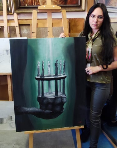 Greta Rameikaitė's work captivates with its mystery and profound, philosophical themes that continue to resonate across the ages. Each piece is unique, blending alchemical and hermetic symbolism with hints of Eastern influences. Her paintings radiate a comforting light, offering hope and gently reminding us that the world is full of wonder and magic—if only we dare to explore the uncharted depths of our subconscious.